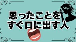 人間関係 思ったことをすぐ口に出す人の末路〜思ったことを口に出す人から身を守る 職場で家族で友人関係で思ったことをすぐ口に出す人に傷つけられていませんか?その態度の裏にある思ったことを口に出す大人の心理と、彼らが迎える末路を心理学の視点から徹底解説。あなたの悩みを解消し、思ったことをすぐ口に出す人から自分を守る具体的な対処法も! 2025.10.05 人間関係